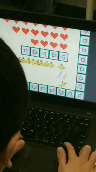 In game development camp, campers produced their very own maze, platforming and scrolling shooter games. They invented their own characters, designed their own story and settings, which resulted in a fully functional game that was greatly enjoyed among other campers. Campers learned concepts of gravity, strategy, portals, and more, in order to create a fun, challenging game that they were proud to share with family and friends. The creativity was astounding! From bananas, to chicken nuggets, to monsters, each game was unique and allowed each campers’ imaginations to shine brightly!