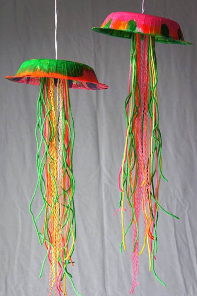 Paper plates and yarn transform into these denizens of the deep. If you use glow-in-the-dark acrylic paint, you can even see their “bioluminescence” in action when you turn out the lights