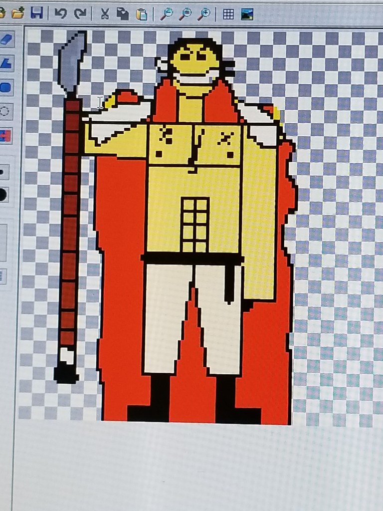A very colourful game character.