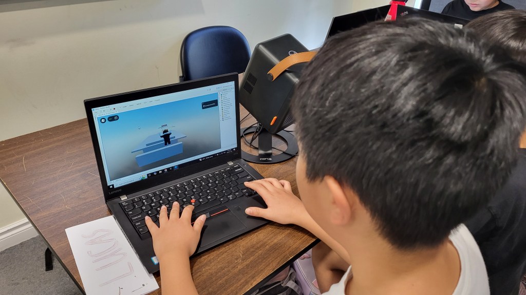 Students in our AI camp trained different AI models to identify faces, sounds, and music. They then use their models to show us how accurate the machine is by feeding in new sounds or pictures. In Roblox Game Development, students created their own Super Mario game where the character had to jump through a series of moving platforms to collect treasures and win the game. We are incredibly proud of their progress. See highlights of what they achieved below.