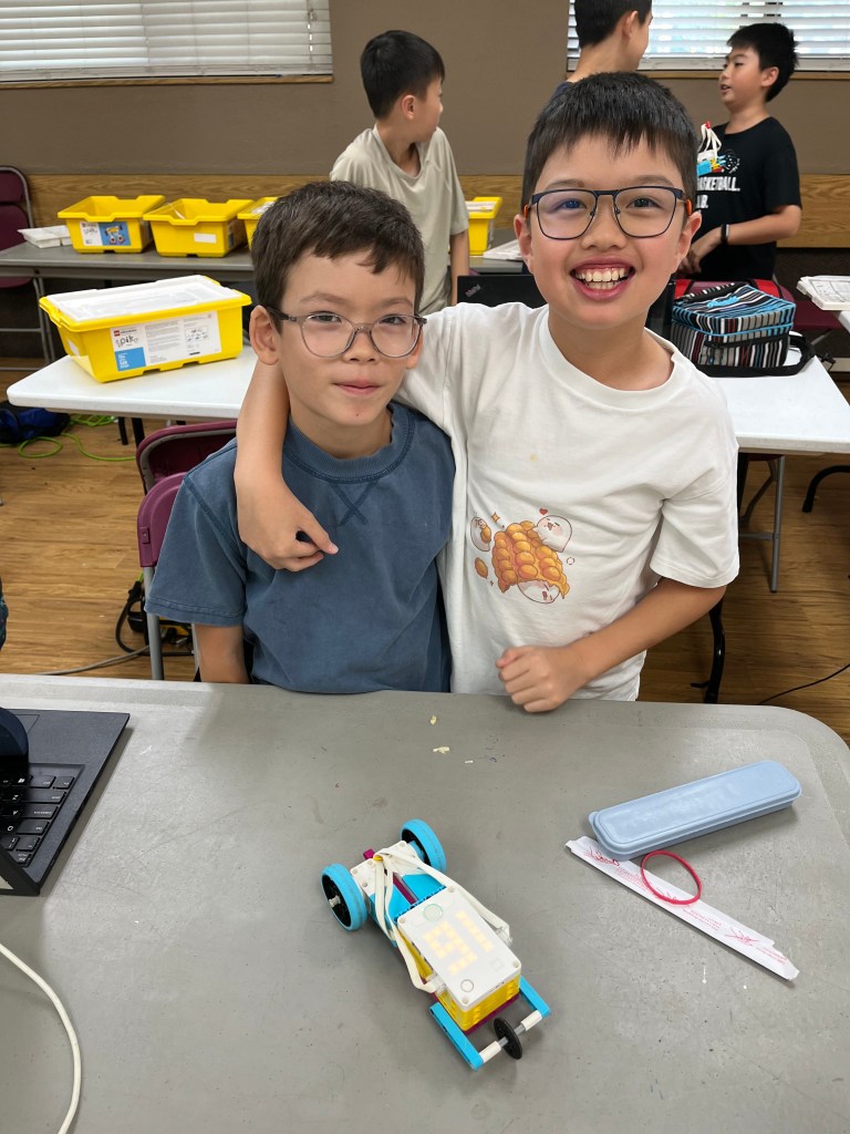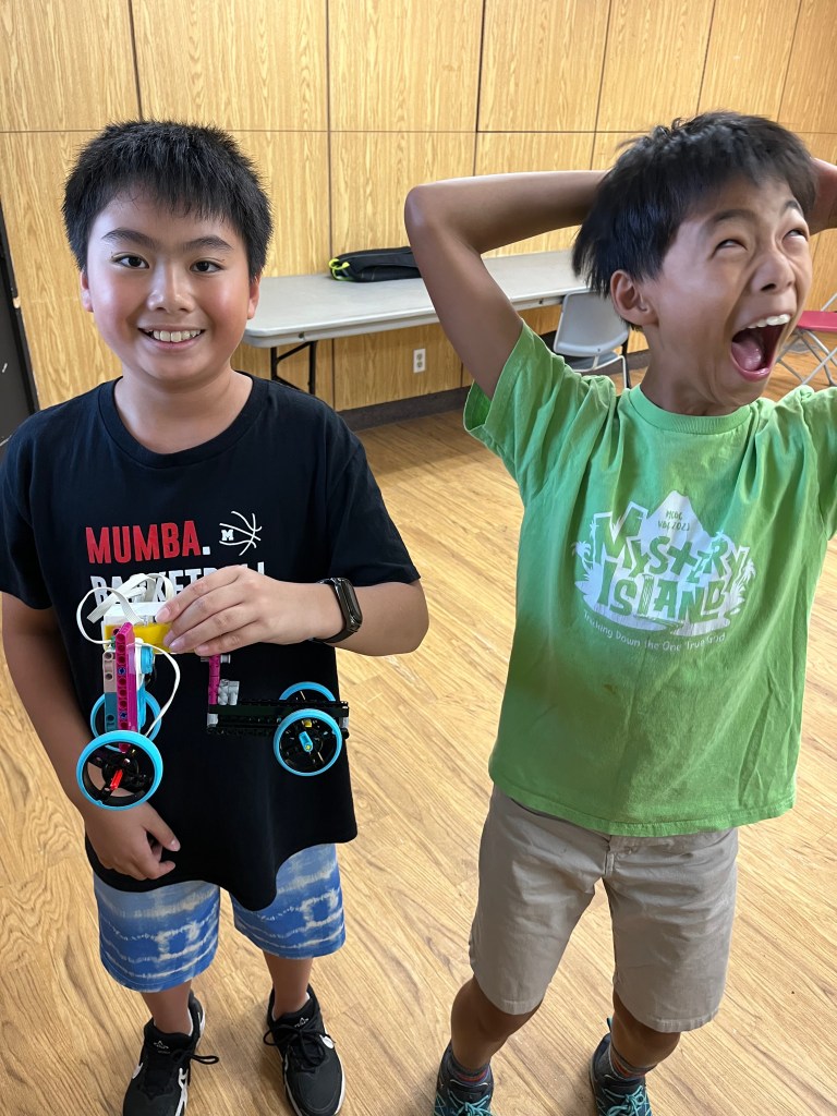 This summer was packed with creativity and innovation across all our camps! We ran multiple camps at 2 locations: Kidzwhiz Markham and City of Markham community centers. Our LEGO Spike Prime campers engineered a variety of motorized builds, from cars to clever safe-deposit boxes, experimenting with sensors, gears, and coding. In our AI Jr. camp, students designed their own interactive games and learned how to incorporate simple AI elements to make their characters think and respond. Meanwhile, our Roblox creators built unique obbies in Roblox Studio, exploring real game-design concepts as they developed their own worlds. We’re incredibly proud of everything our campers accomplished—take a look at some of their highlights below!